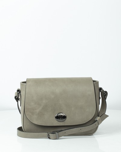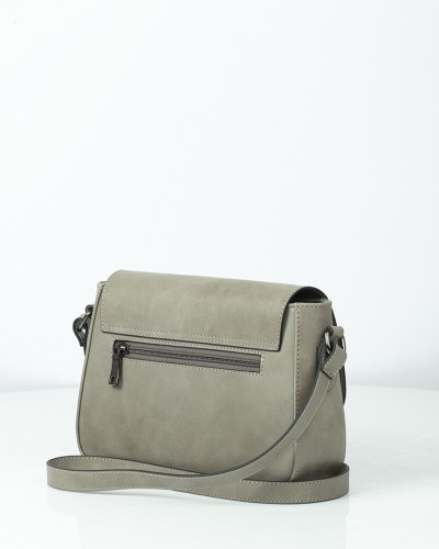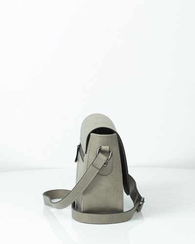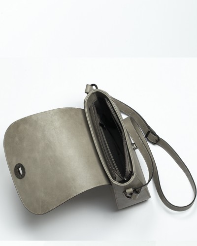 Poșeta se închide cu o clapă și element de furnitură metalizată. Pe interior are un singur compartiment cu închidere în partea superioară și doua buzunare, dintre care unul se închide cu fermoar.