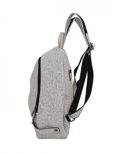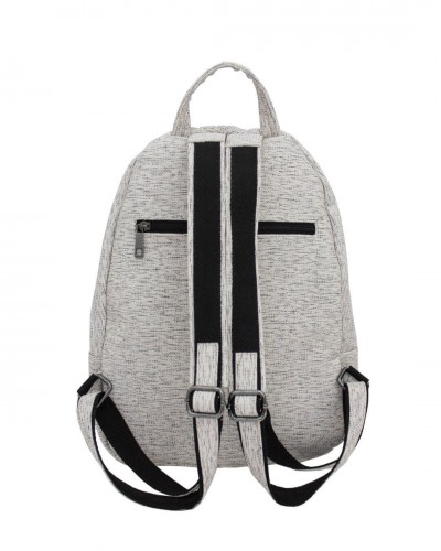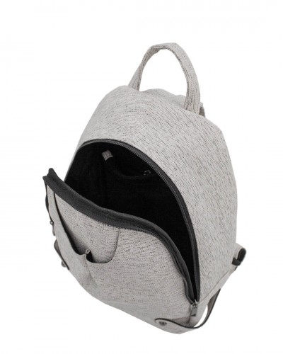 Rucsacul este dotat pe exterior cu un buzunar deschis pe față și un buzunar cu fermoar pe spate.